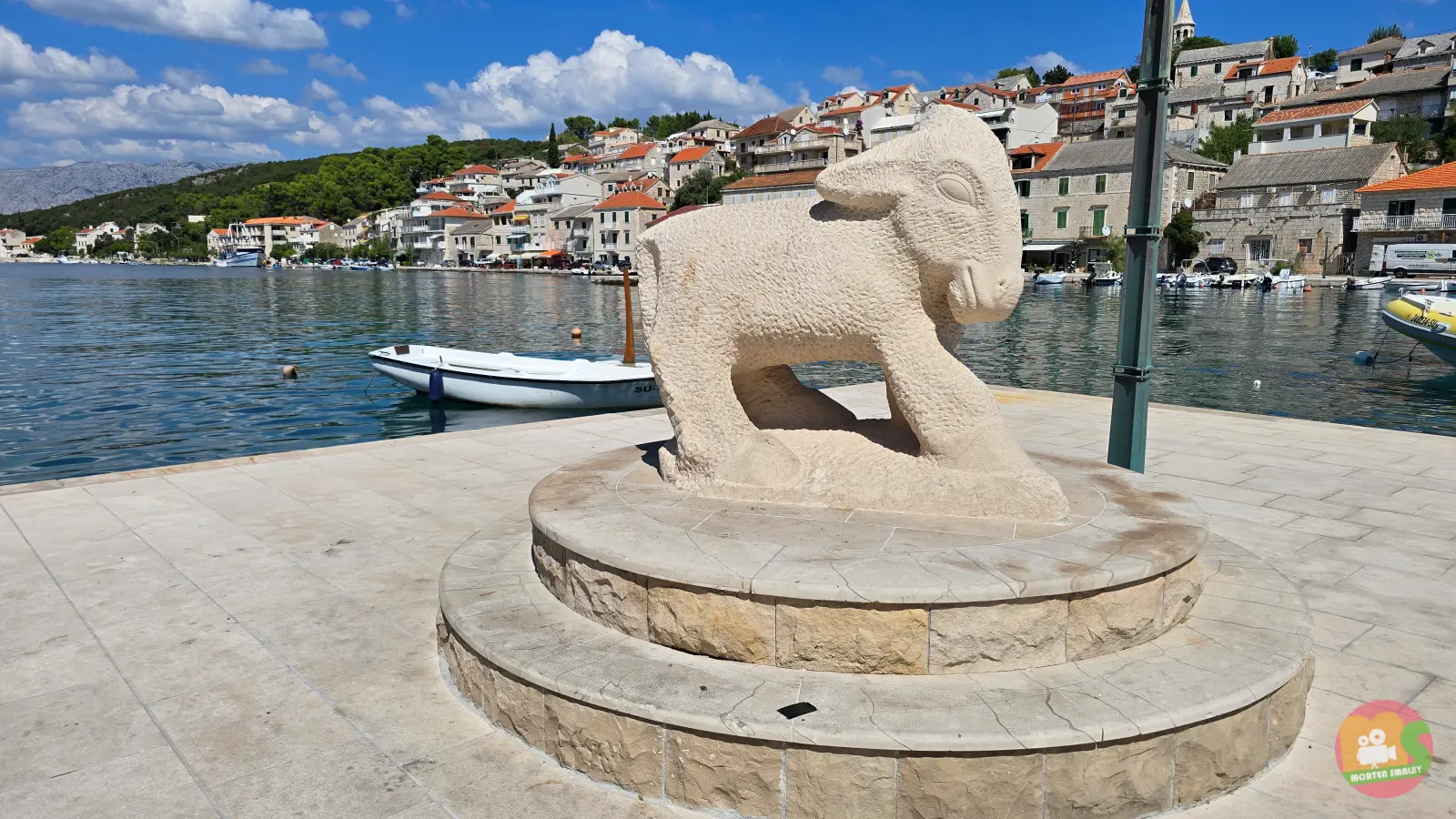 Forbindelsen til Brač sten er tydelig i arkitekturen – de fleste huse langs rivaen er ægte stenhuse.