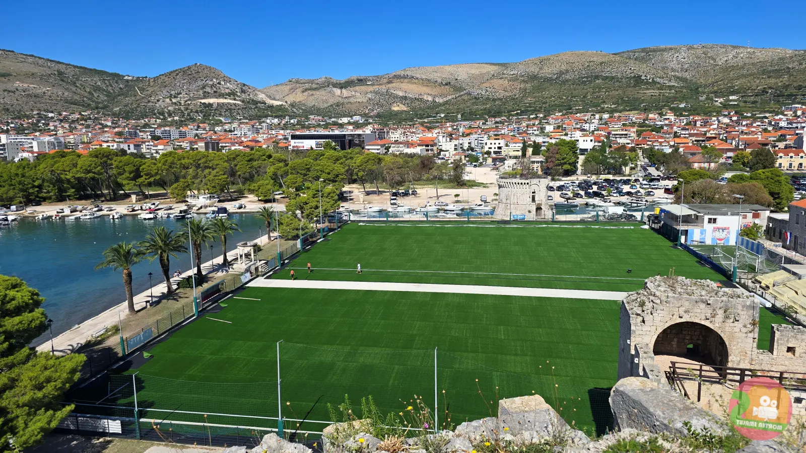 From the fortress, you have a good view over the city, but not as good as from the bell tower. One thing you can see better is the island football field.